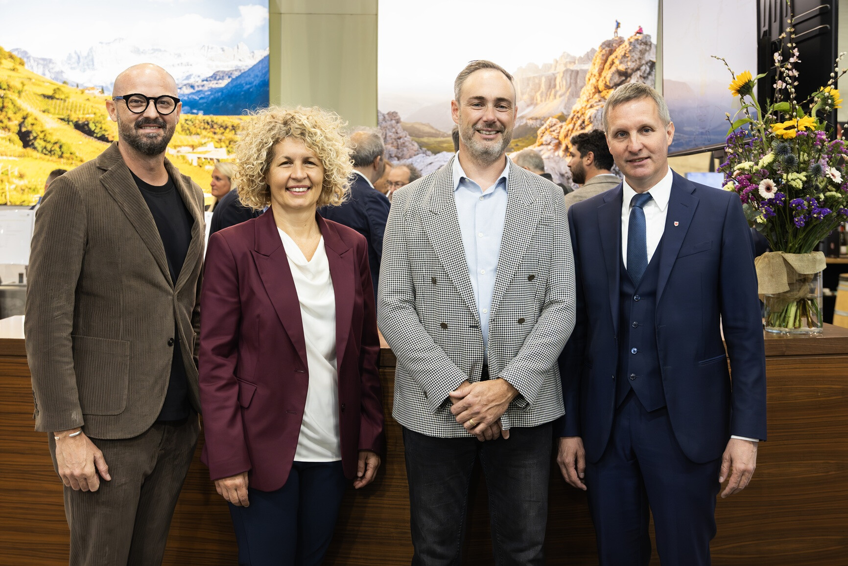 FOTO_T3A4423: vlnr Eduard Bernhart (Direktor Konsortium Südtirol Wein), Margit Gamper (Direktor Business Development von IDM Südtirol), Andreas Kofler (Präsident Konsortium Südtirol Wein), Luis Walcher (Landesrat für Landwirtschaft und Tourismus)